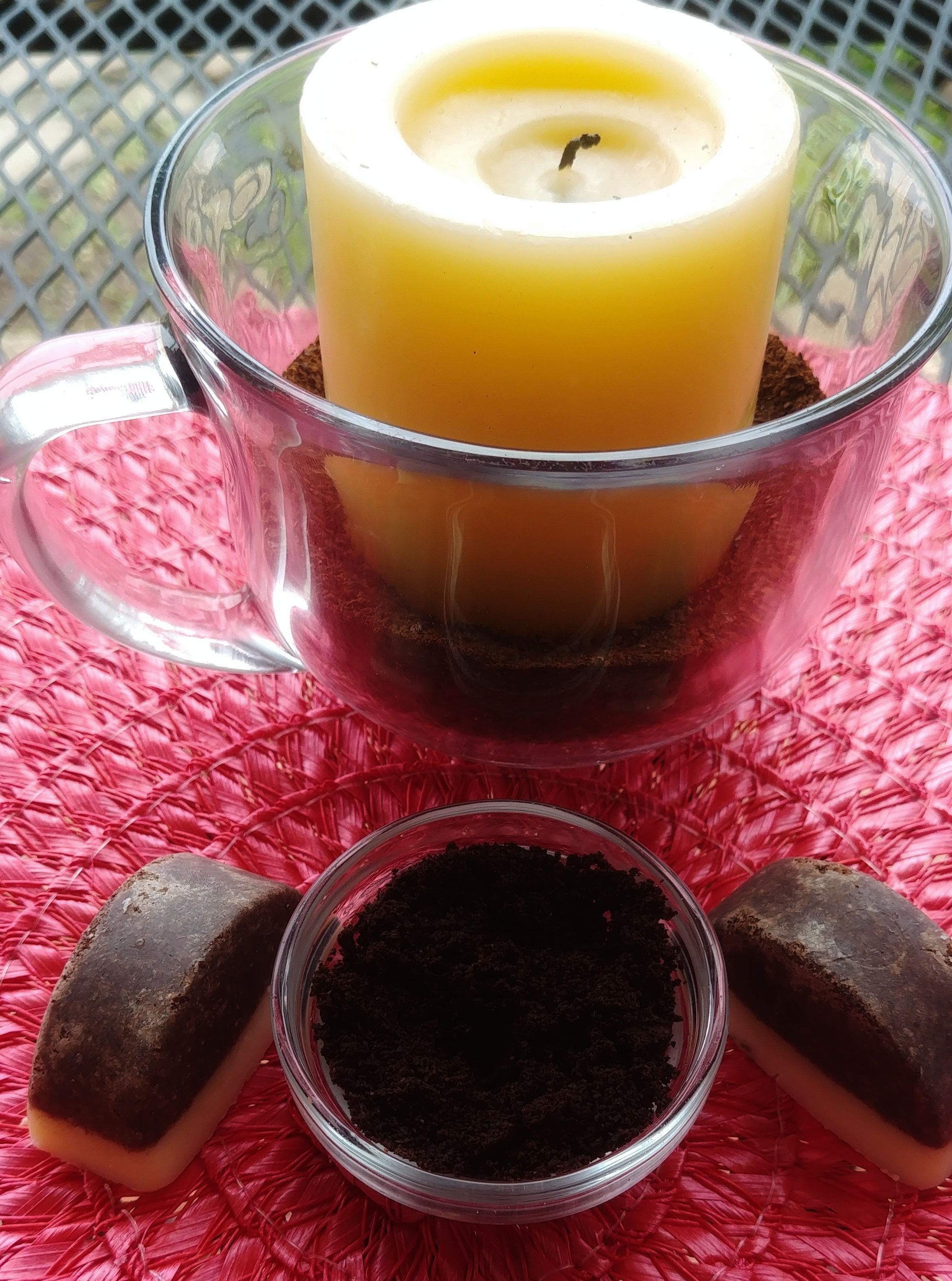 - Put coffee grounds into a dish with a candle, as the candle burns it will smell like fresh roasted coffee