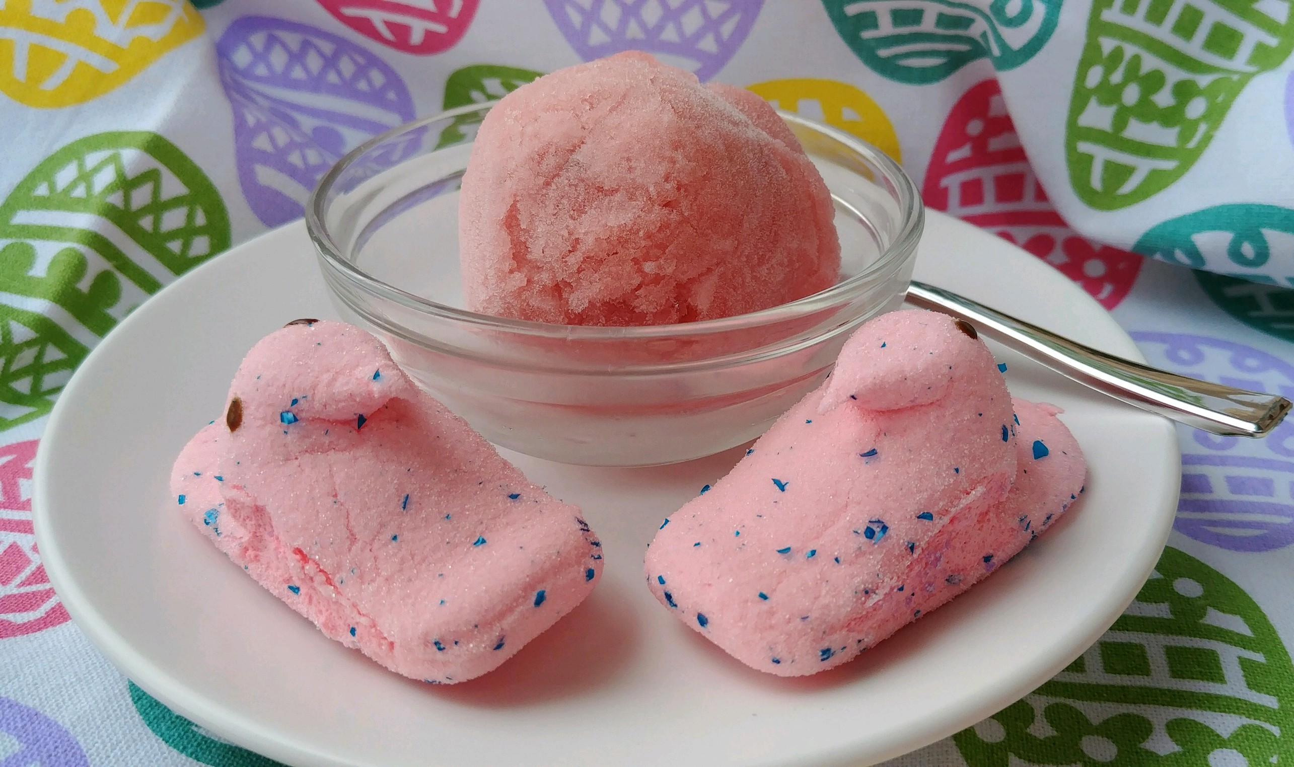 Since I recently enjoyed my Old-Fashioned Soda Sorbet made with marshmallows, I couldn’t help but think about how it would be made with the famous Easter candy, PEEPS. As a PEEPS fan, I was super excited to find Cotton Candy PEEPS chicks at the store. Let me tell you, I am so very glad I did for they made the best sorbet and you can bet I will be heading to the store for some more.